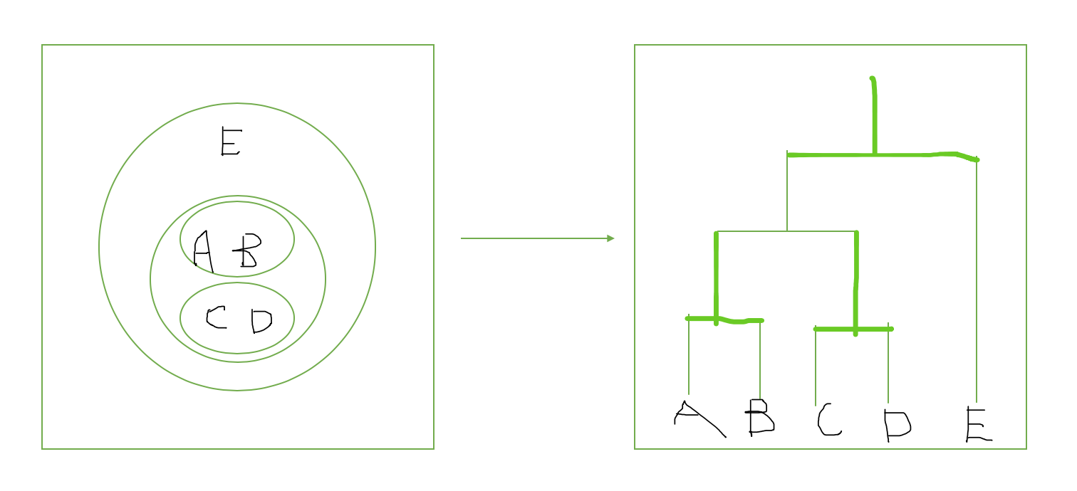 この手法は、結果を出すのに繰り返しデータを計算して断層的に併合するので樹形図のような形に見える。