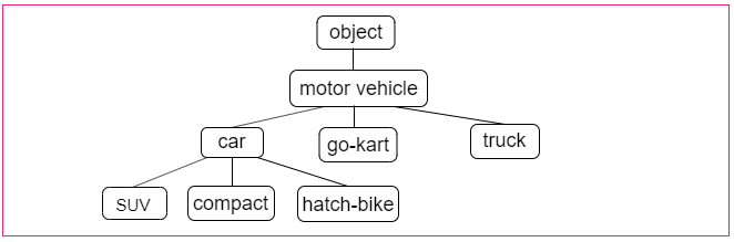 また、自然言語処理において利用されるシソーラスでは、単語間で「上位と下位(is a の関係)」、「全体と部分(part-of の関係)」などのより細かい関係性が定義されている場合がある。次のようなグラフ構造によって各単語の関係性が定義される。
